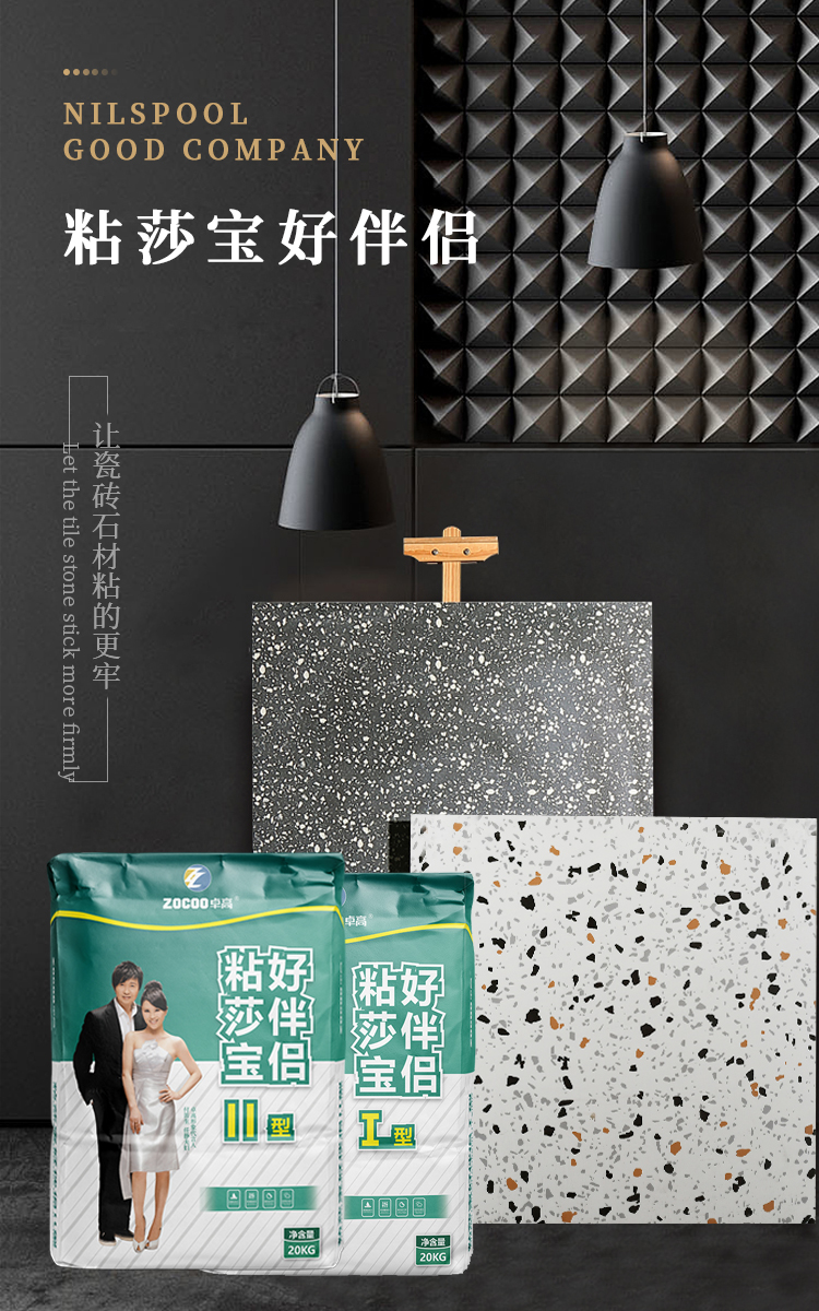 粘莎寶好伴侶是精選優(yōu)質(zhì)天然無機礦物原料配制而成的砂漿產(chǎn)品,適用于室內(nèi)瓷磚的鋪貼,能強力粘結(jié)低吸水率的瓷磚。